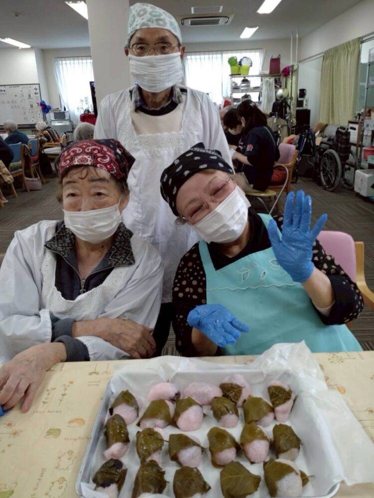 お花見の季節ですね 北雄琴デイサービスでは30日に桜もちを作りました 本当はオヤツを持ってお外に出掛けたかったのですが あいにくのお天気でドライブに変更し桜を見に行ってきました♫
