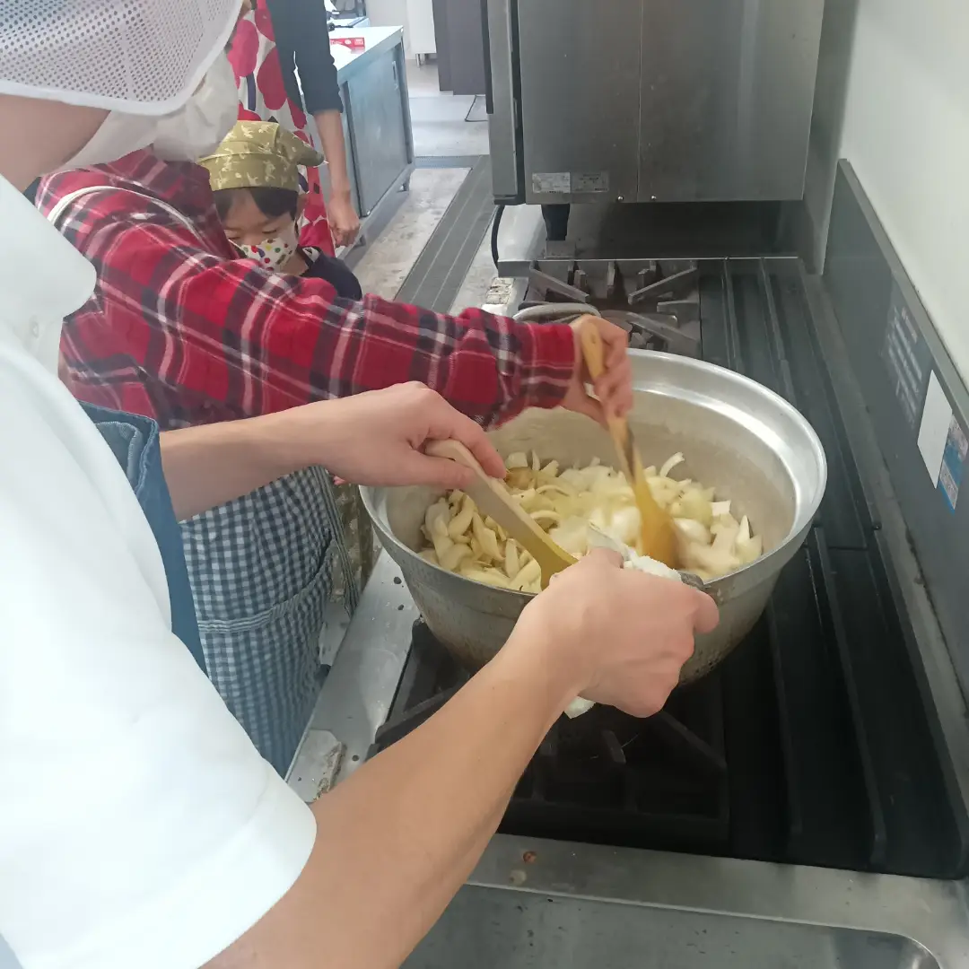 玉ねぎ剥きで涙を流す子もいましたが 何とか今回も美味しく出来ました!