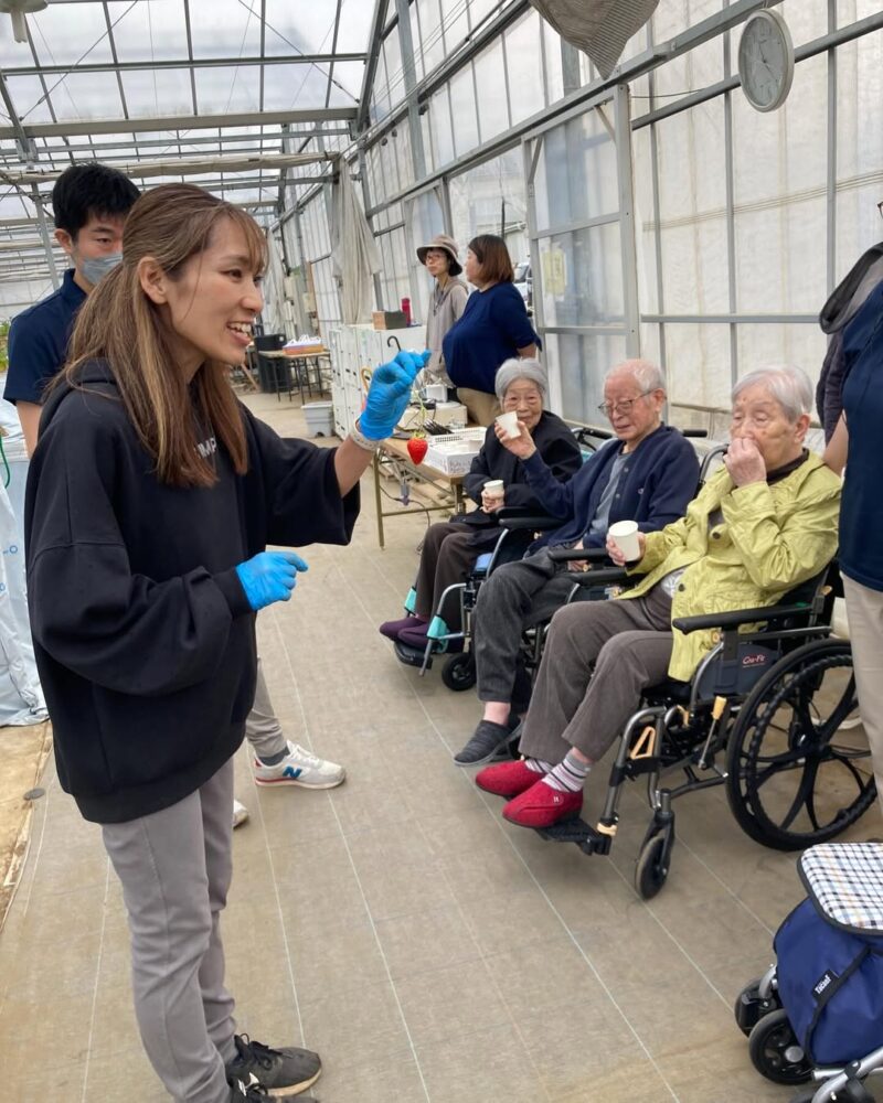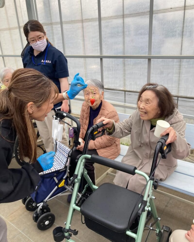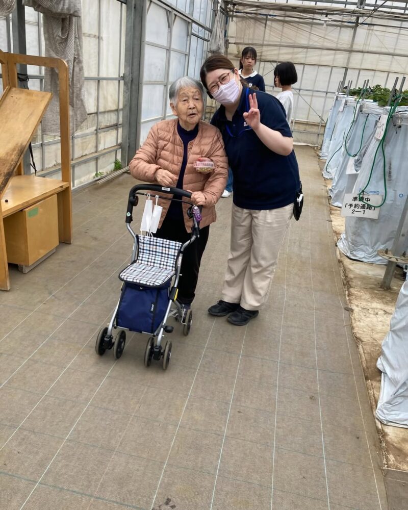 30分食べ放題に参加しました。50個以上召し上がられた方も!2種類のいちごがあって、どっちが甘い?と食べ比べを楽しまれたり…4月から新入社員として西おおいずみに入られたピカピカ1年生さんも参加してもらいました!ゆっくり入居者様と歩幅を合わせて歩いてくれている姿も!頑張ってくれました。