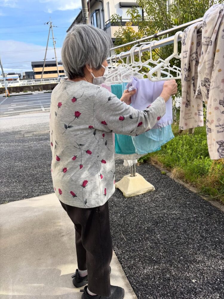 グループホームでは、日常生活の中で職員と共に料理や掃除、洗濯物干しなどを行い、