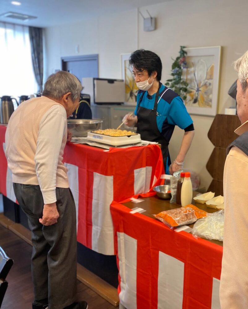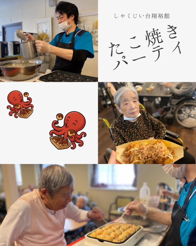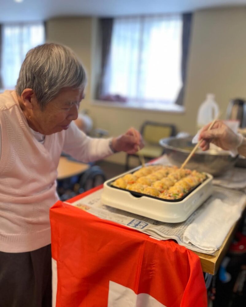 当施設の“たこ焼き職人”の焼くたこ焼きは、毎回トロトロふわふわに仕上がり、みんなから大人気なんですよ〜
