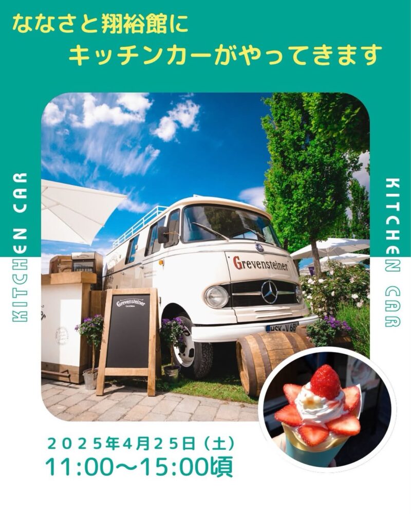 ななさと翔裕館にクレープのキッチンカーがやってきます 2025年4月25日(土)11:00〜15:00頃まで 皆様のお越しをお待ちしております