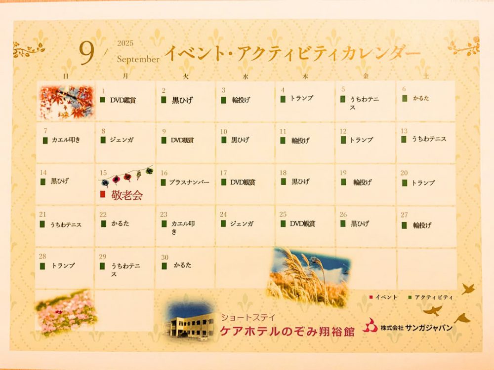 遅くなりましたが、9月のアクティビティカレンダーになります。