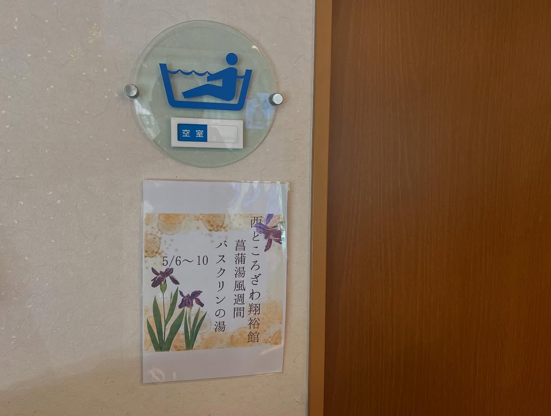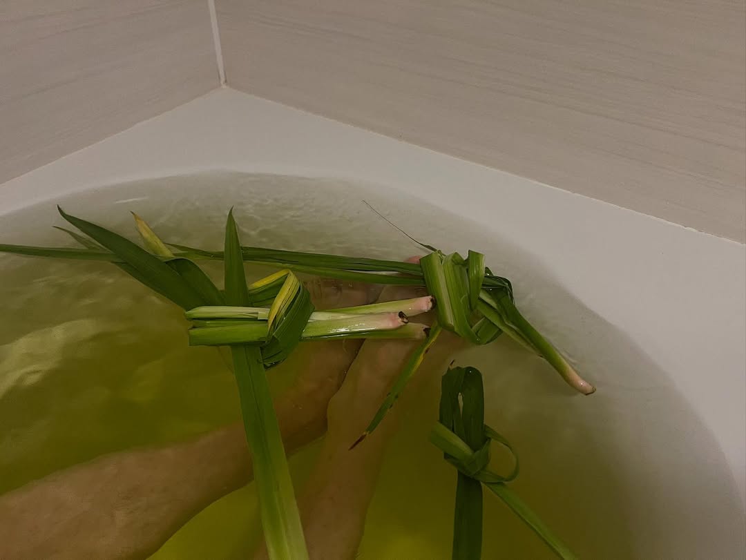 湯に菖蒲をつけ、菖蒲のバスクリンを入れてゆっくり浸かっていただきました