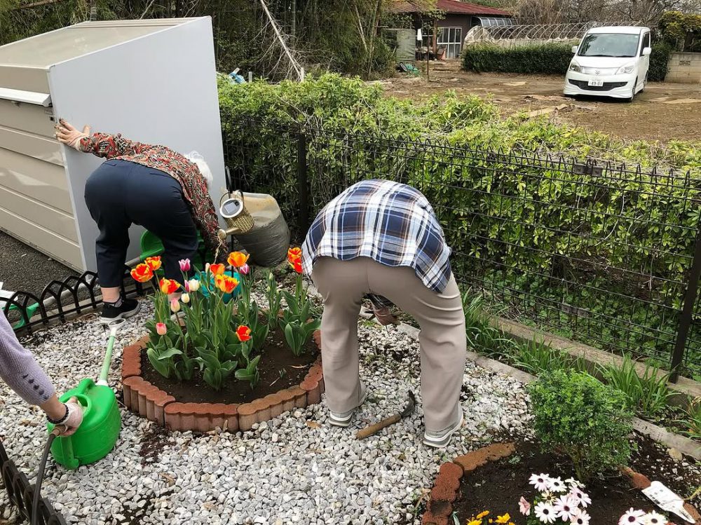 秋に植えたチューリップが咲きました^_^皆さんで60本植えて、咲く事を楽しみにしていたので、利用者様感激!です。