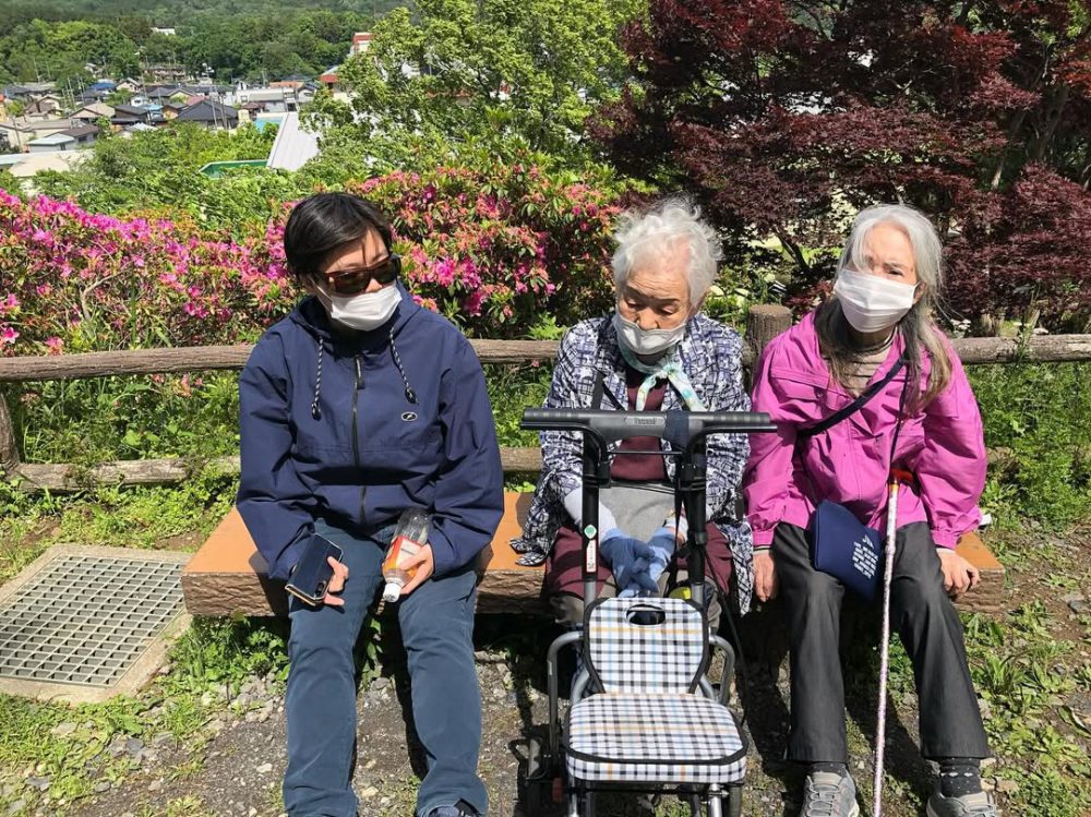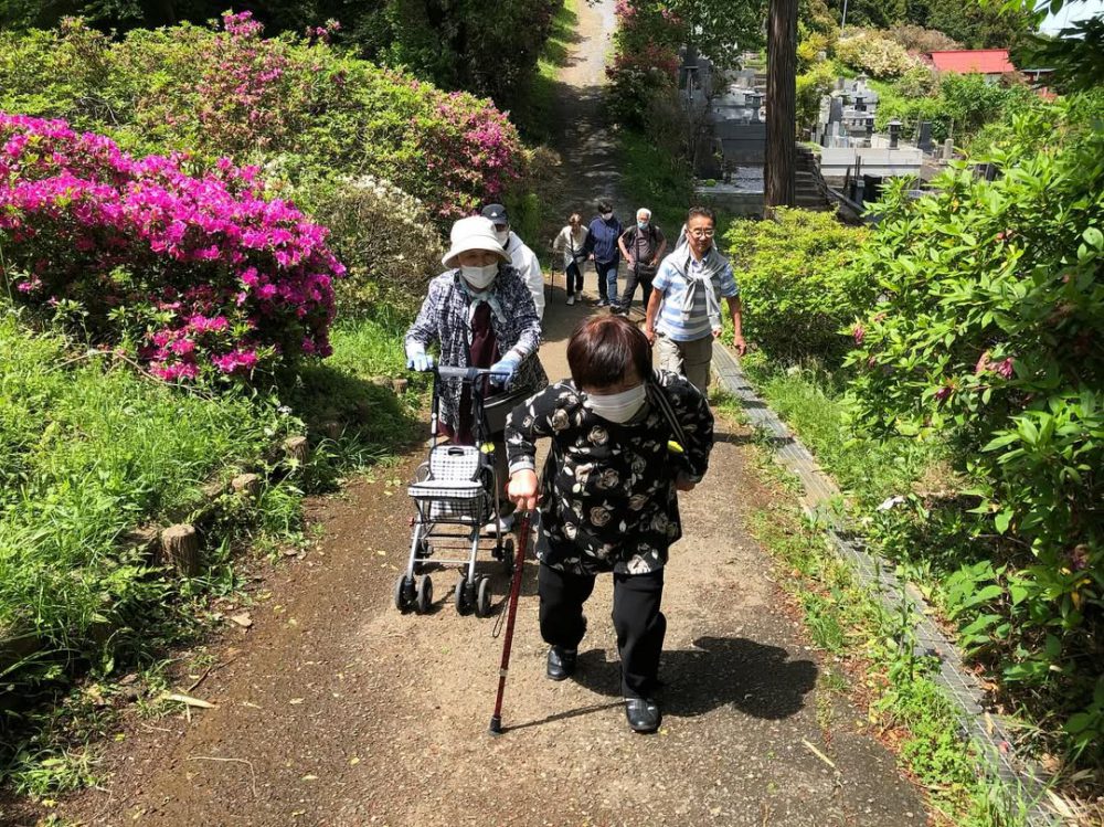 ただ、つつじ山と言うだけあって、すごい坂を登って歩くこうで、利用者様も、職員も、はぁはぁ言いながらの見学となりました。しかし、我がデイサービスの利用者様は、強者揃いですので、写真にある様に皆さん頑張って登られました。凄い景色と、美味しい空気を満喫されていました!