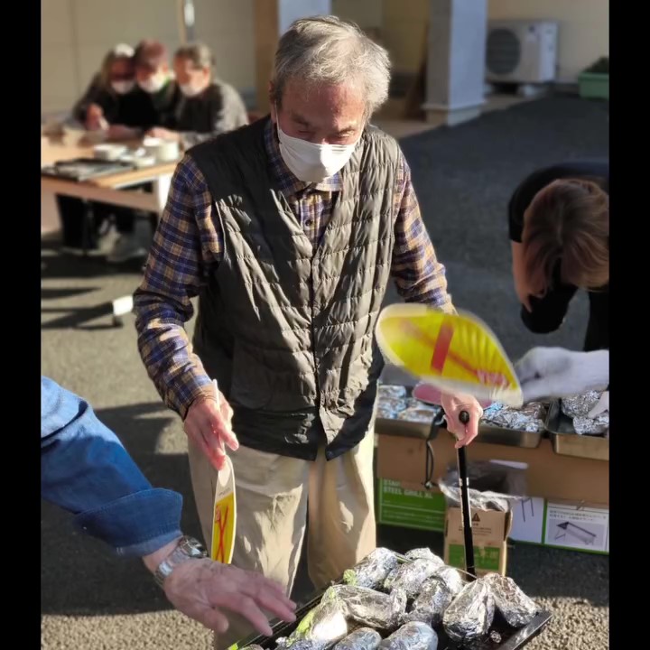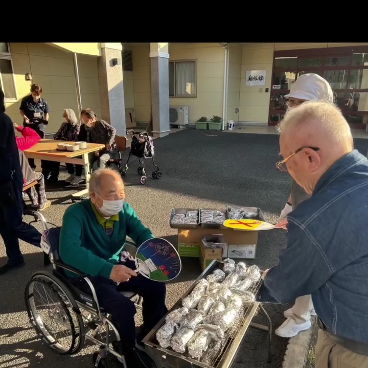 デイサービス ではおやつに焼き芋をご用意しました。しかも炭火で!火おこしは施設長と職員の女子3人組にお任せ!ご利用者様も外に出でいただき火おこしにチャレンジ!若手だって負けてはいられません!