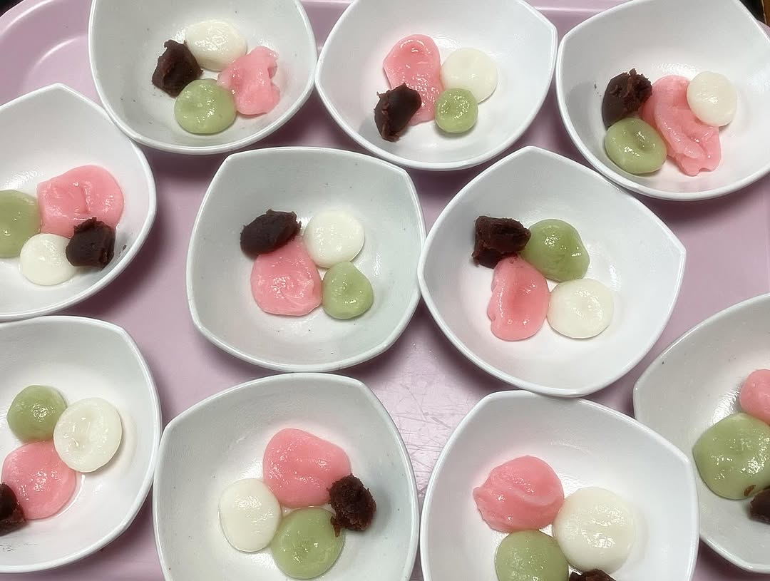 皆様にお団子を食べて頂き、春を感じて頂きました