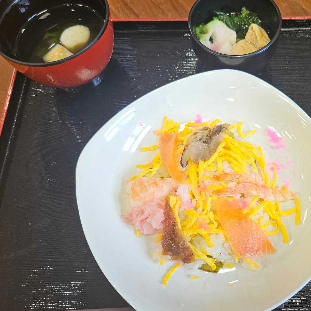 今日はひな祭り ということで本日の昼食はちらし寿司、おやつは桜餅・甘酒でした! 皆さん美味しそうにパクパクと召し上がっています。