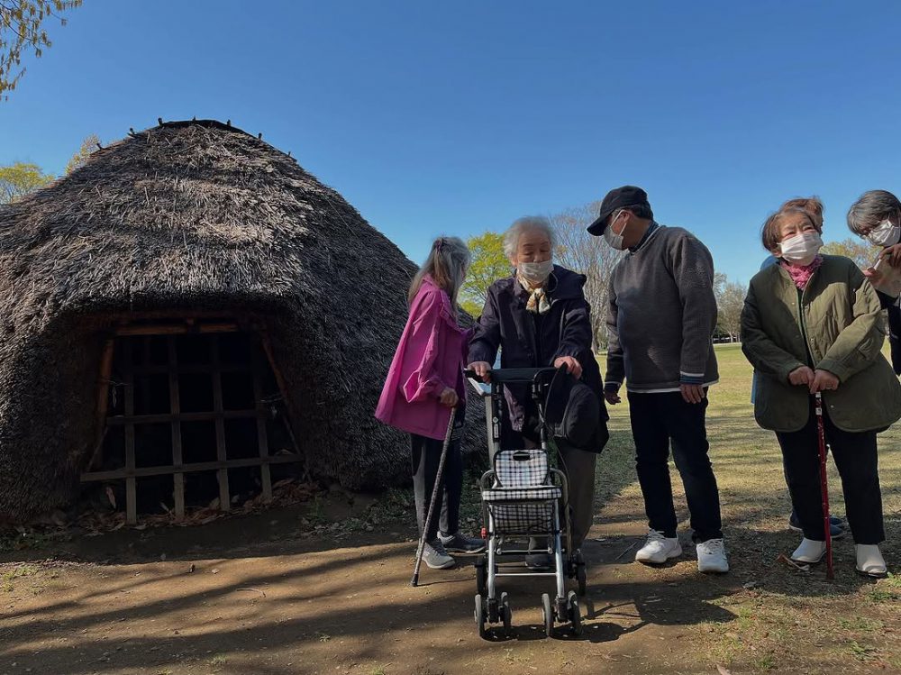 今日は、水子貝塚公園に、竪穴式住居を見に行って来ました!資料館、展示館を見て、お勉強をして頂き、竪穴式住居を見学しました。中に入る事も出来て、利用者様も、体験入居です♪