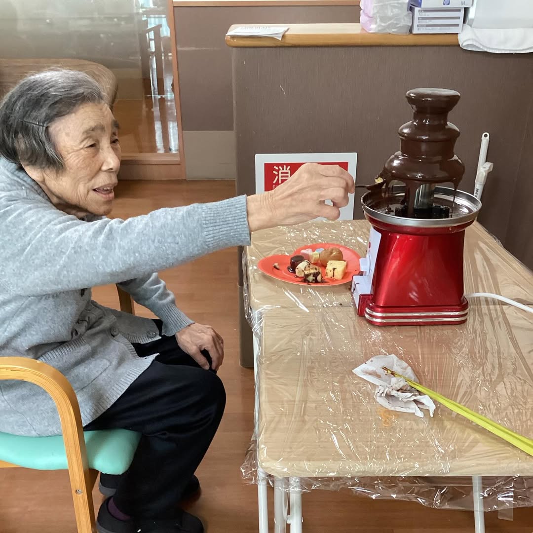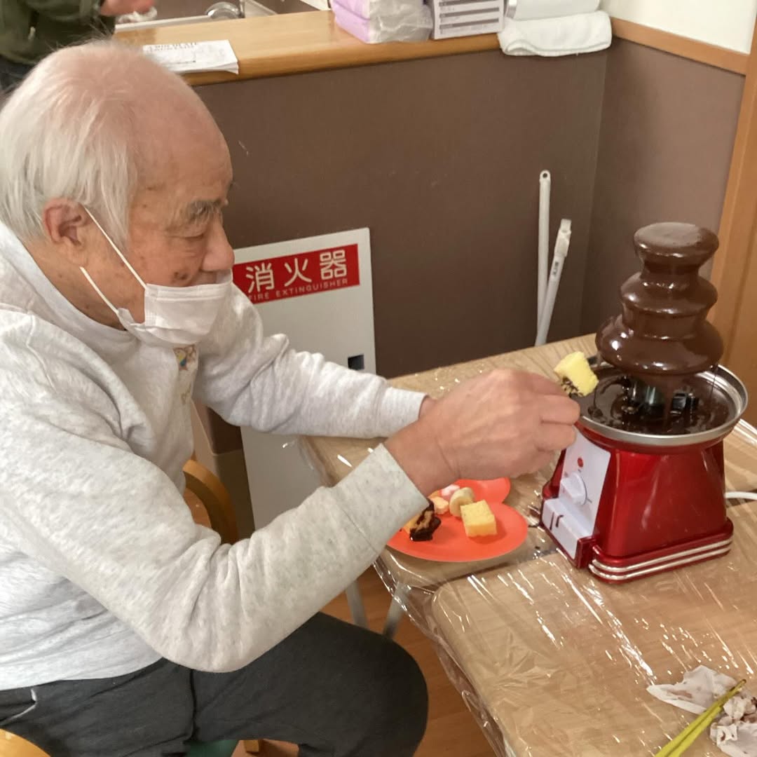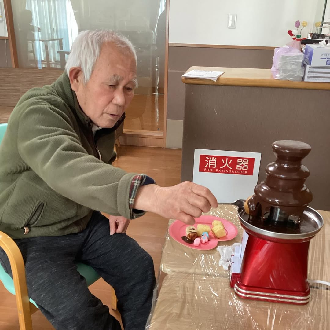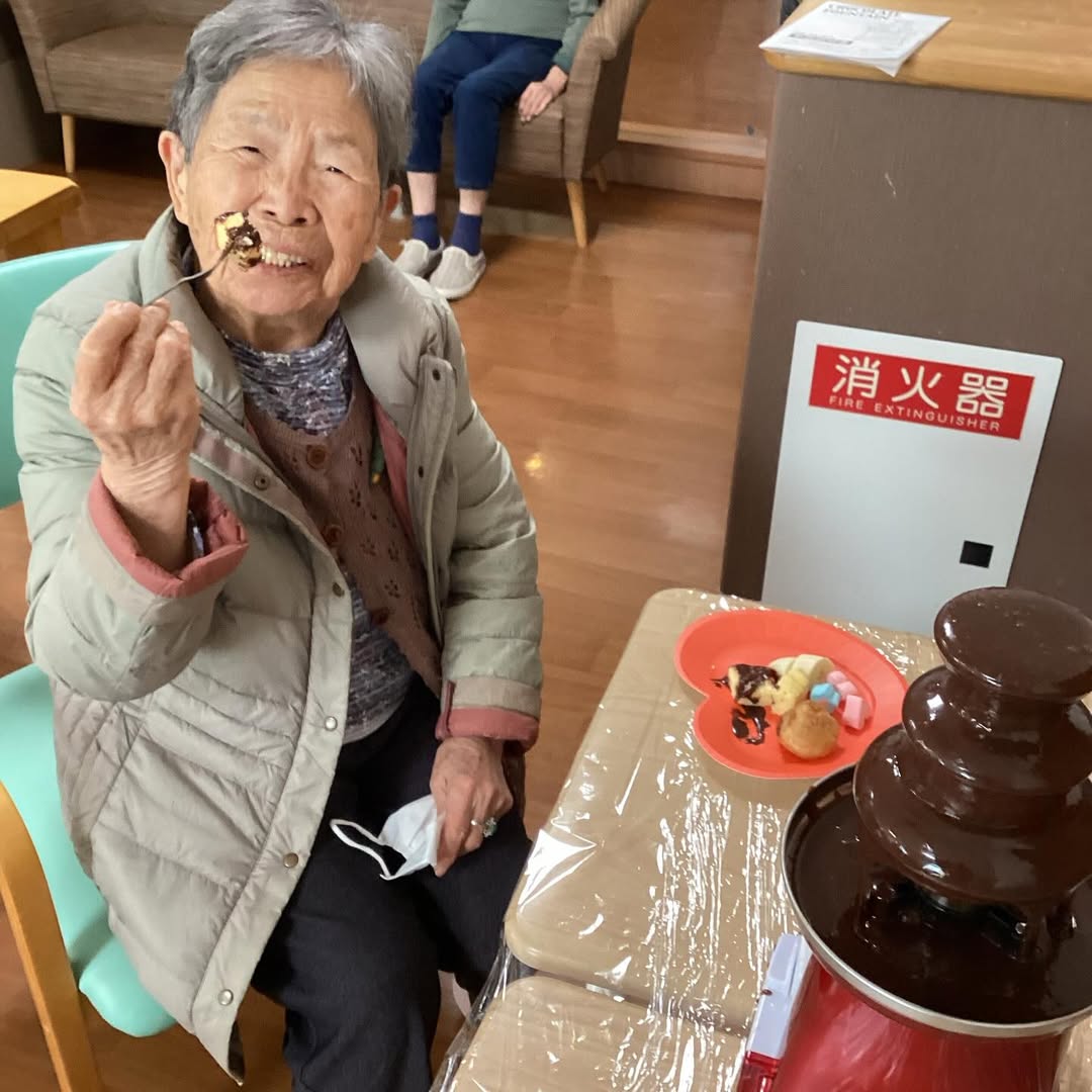こんにちは♪ ところざわ翔裕館II号館ショートステイです。 明日はバレンタインデーなので、本日のおやつに チョコレートホンドゥを皆様に召し上がって頂きたした〜 甘い香りに包まれながら皆様美味しいと、大変喜んで頂きました。
