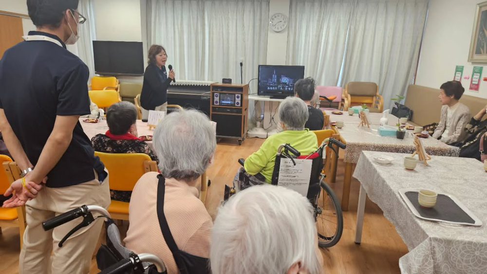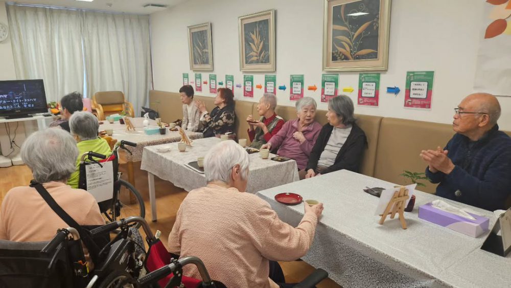 今月のげんき食堂の様子です ランチタイムも終わり昼下がり。施設に入居されている利用者様と一緒にカラオケとおやつで盛り上がっていました
