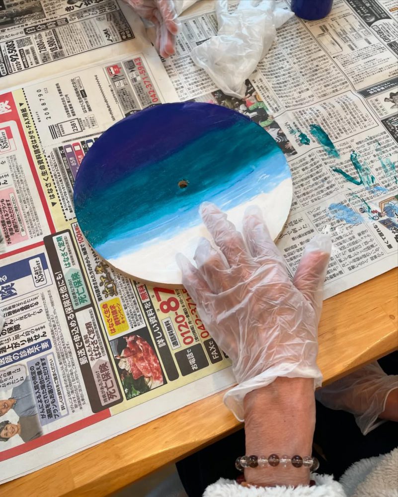 まずは木の板に下地を塗っていく作業から行いました