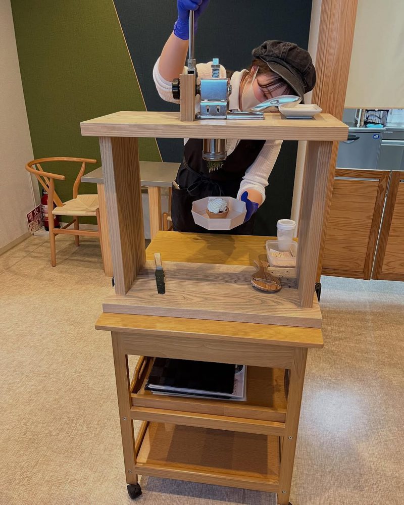 前回同様、お店のスタッフさんが、モンブラン作りのパフォーマンス!初めて見る方も2回目の方も、面白いよねー。と感嘆されていました。