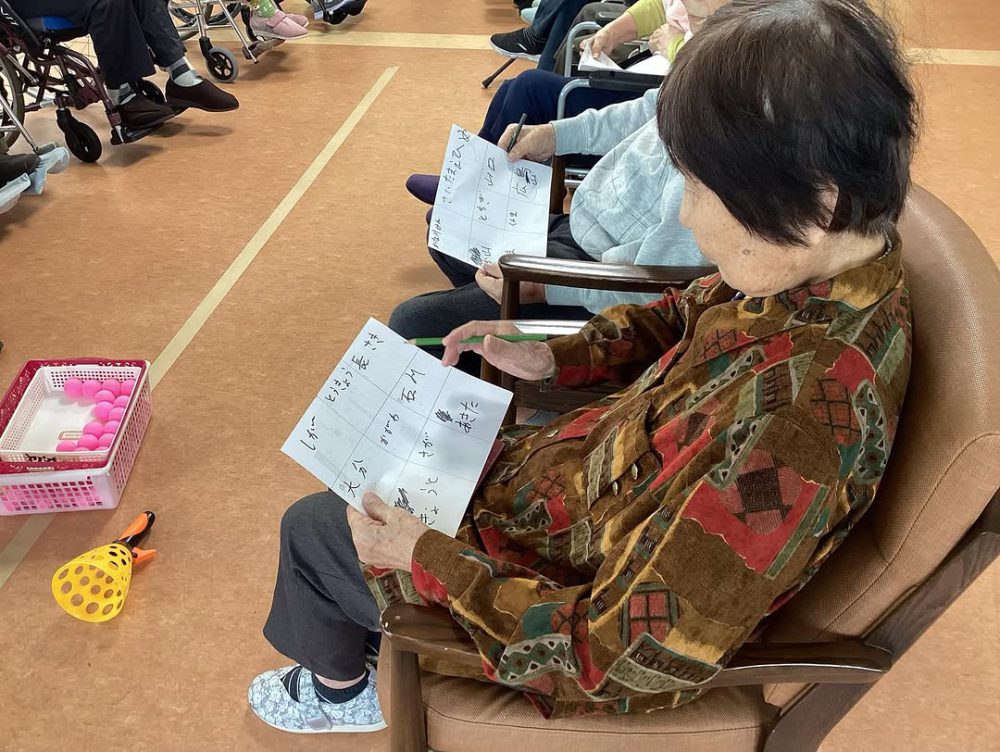 今日のレクは少し難しかったですが、皆様とても楽しそうにされていて、表情にもいつもより笑顔があり、「面白い」と言われていました。
