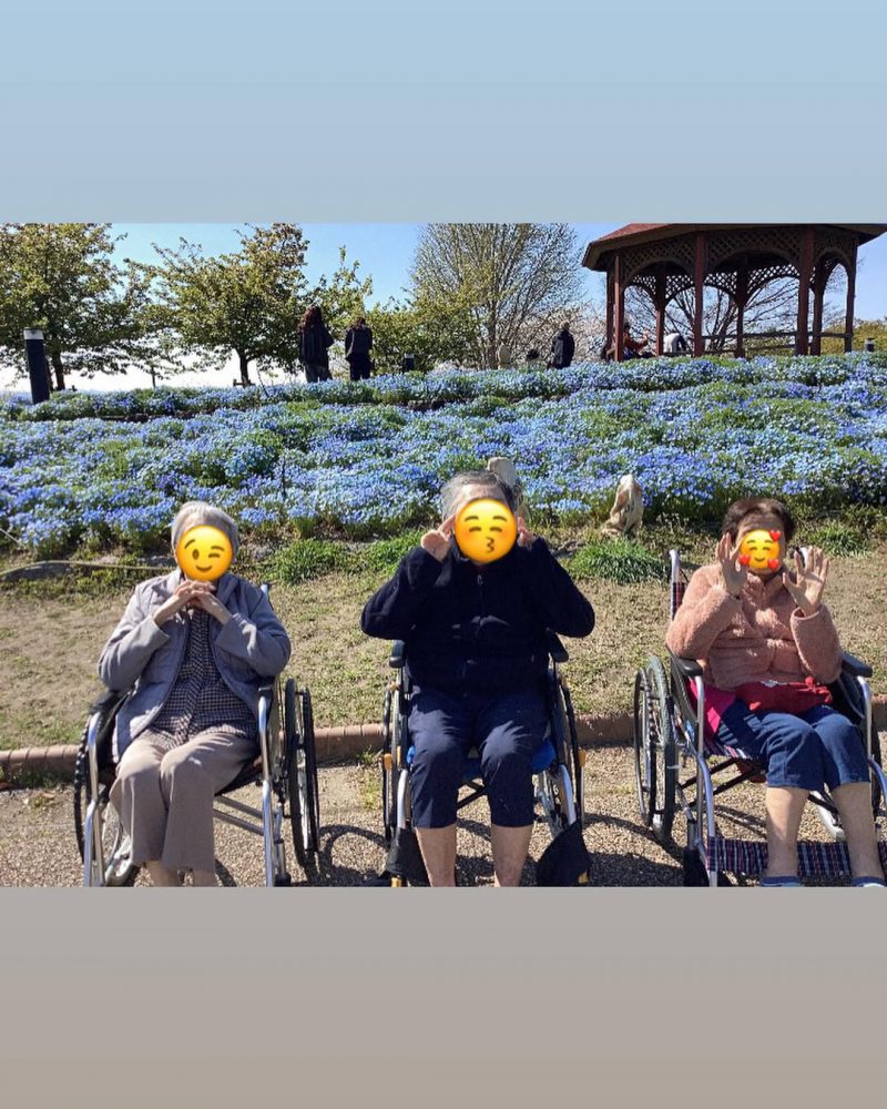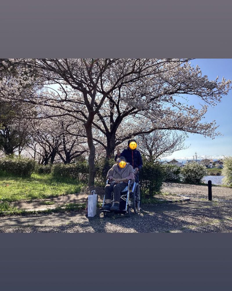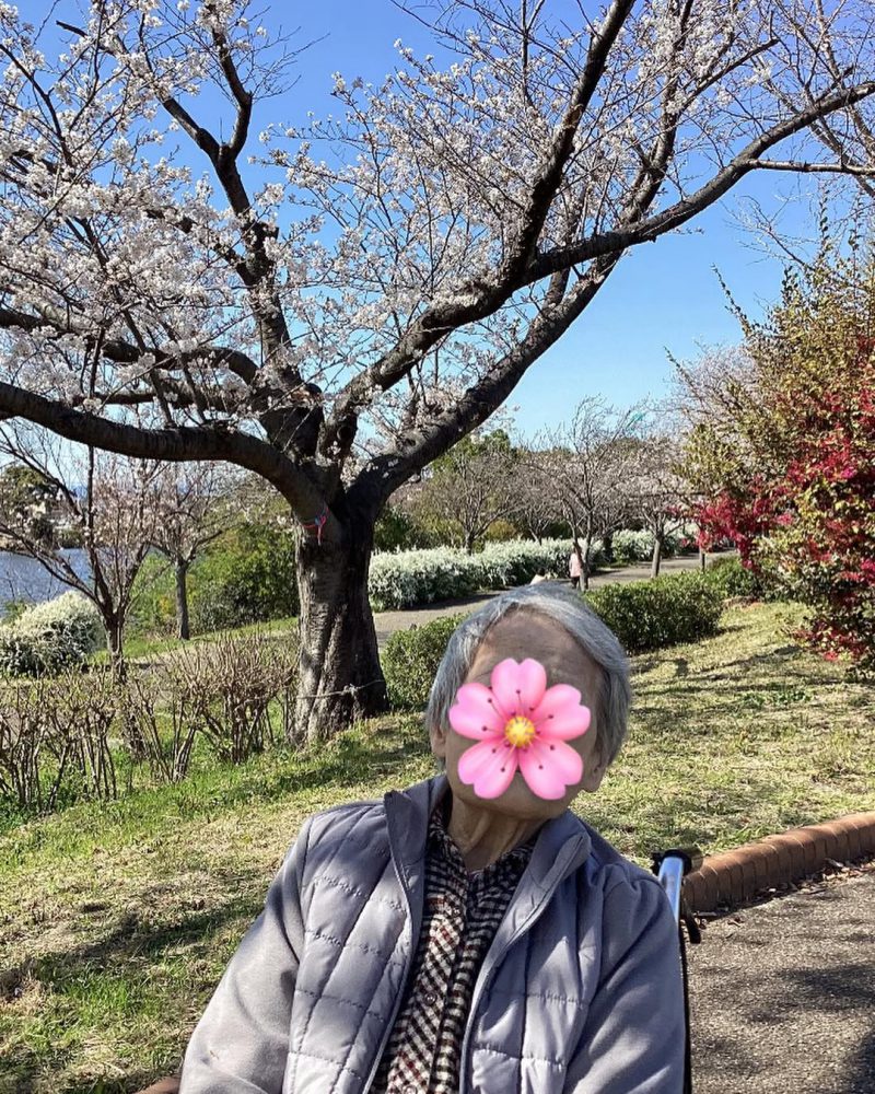 やとみ翔裕館でこちら写真は皆んな様が桜を見に行ったリ、お天気が良くて日差しがたっぷりの中をお散歩された時の。とても可愛らしい写真です。 皆な様とても楽しそうで、嬉しそうにしていました。いつも笑顔で「とても楽しい」と言われました。