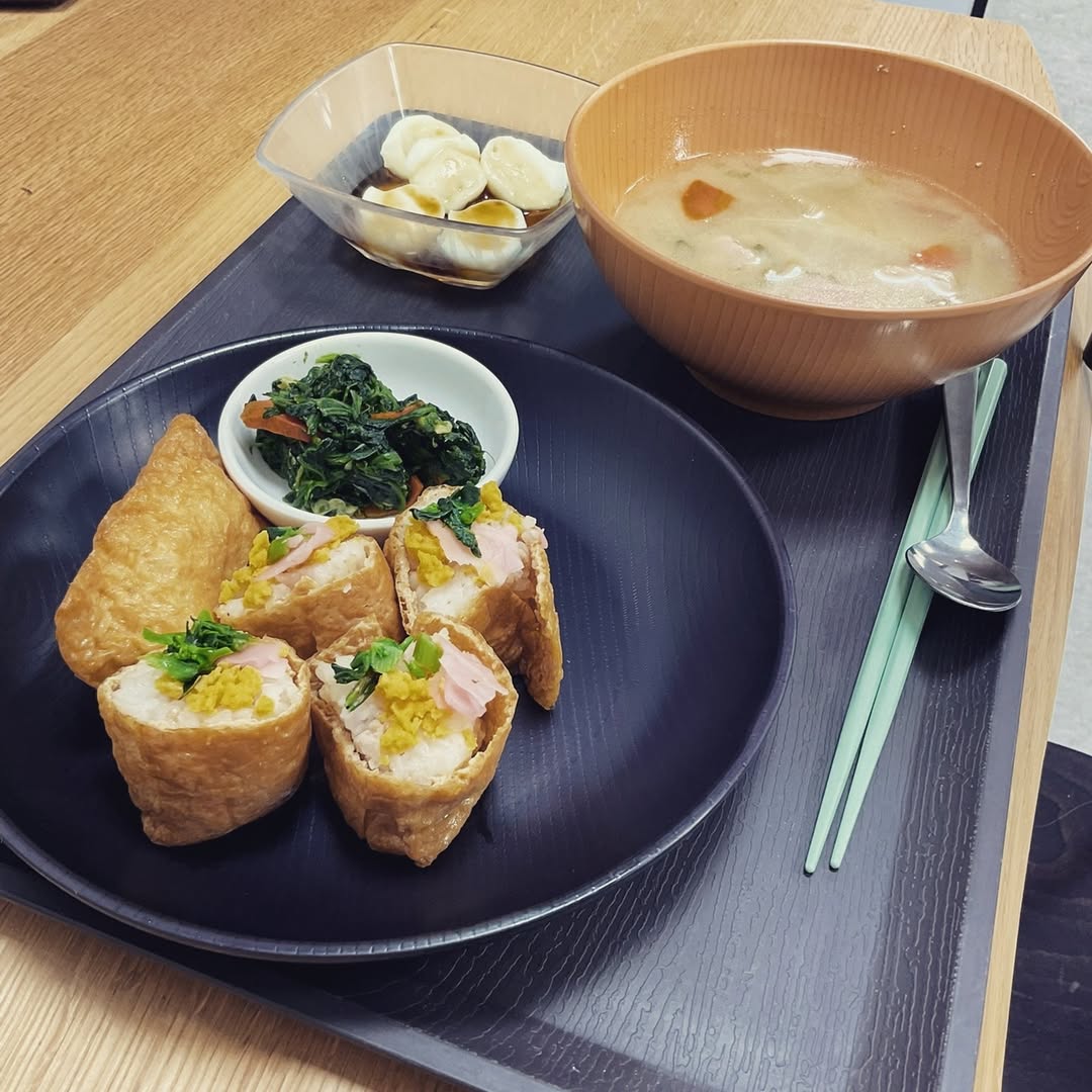 先日「春の統一メニュー」として昼食に「いなり御膳」をご提供いたしました 見た目も華やかなおいなりさん、味も抜群でした みたらし団子も食べやすい柔らかさ、大きさにカット 春を感じる、良いひと時となりました