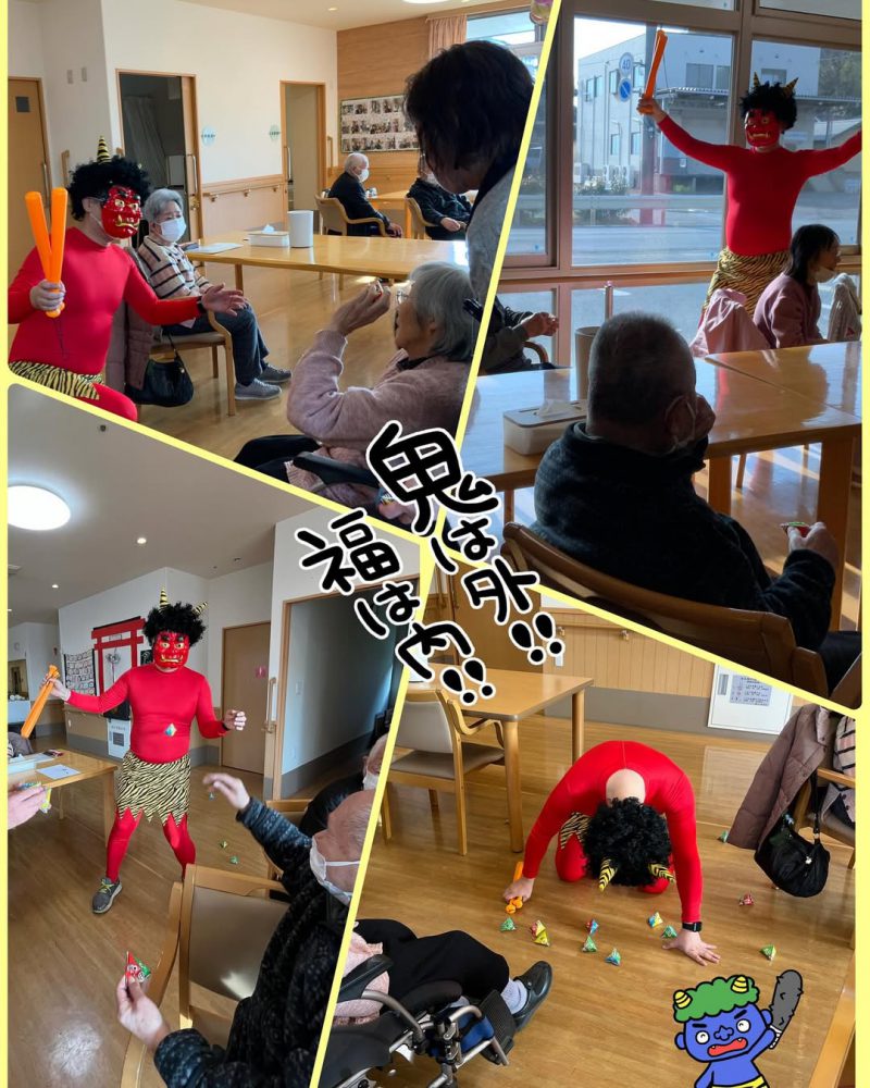 みよし翔裕館に鬼が来ました 力を合わせ鬼退治 見た目は怖そうだったけど優しい鬼さんだったな〜笑