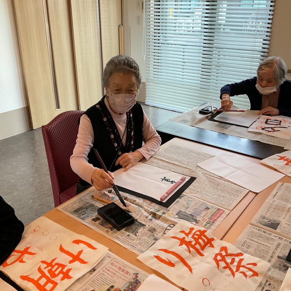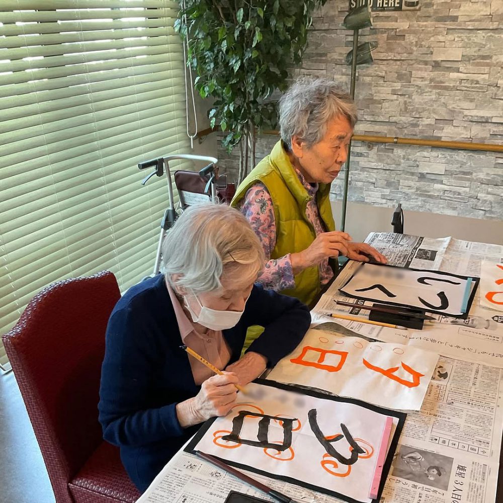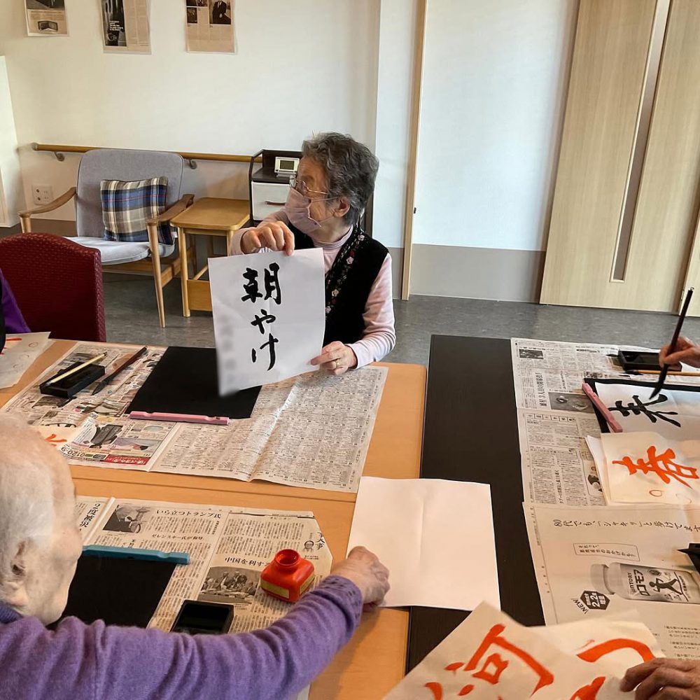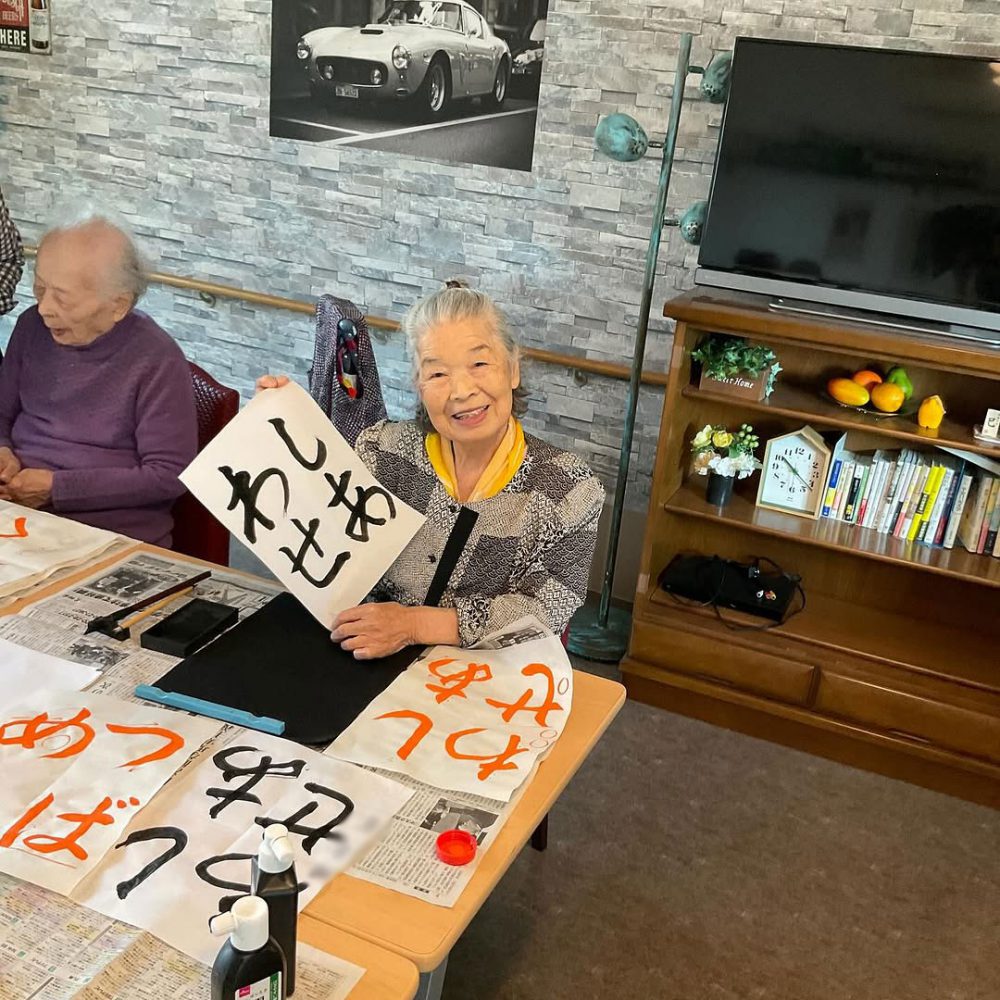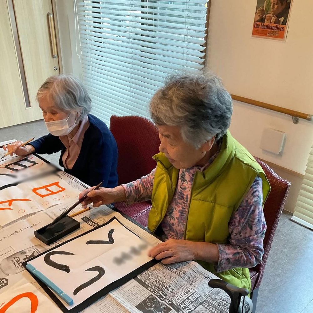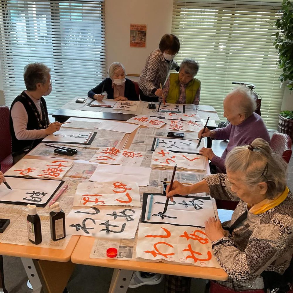お習字の時間 手を動かし、昔を思い出しながら皆様お上手でした