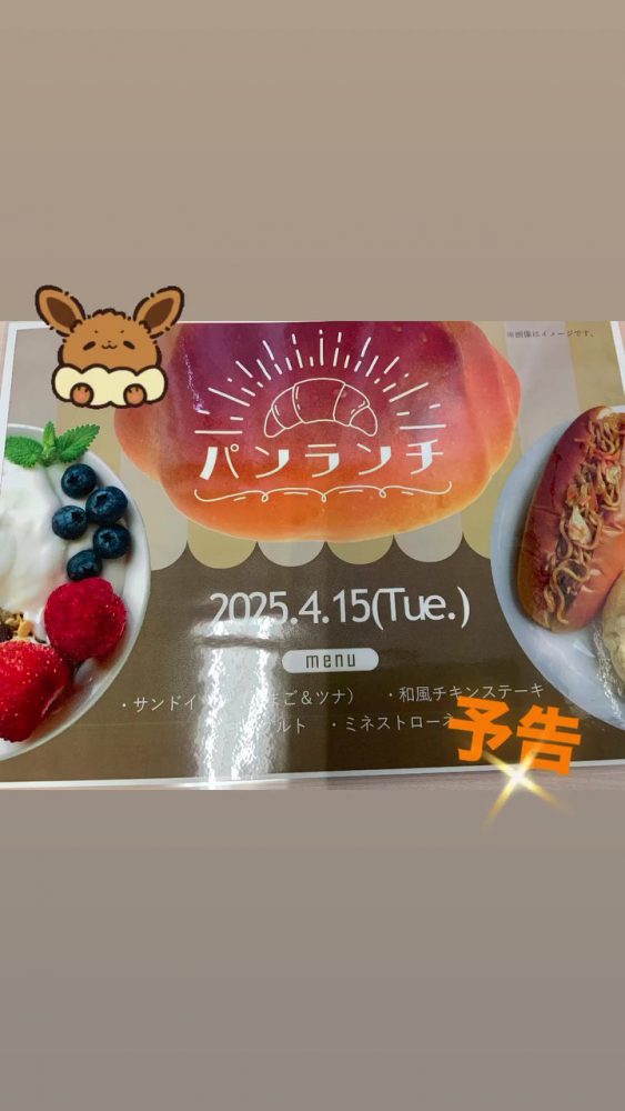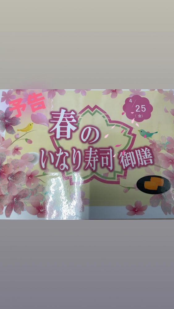 予告 4月の特別メニューのご紹介です 4/15(火)パンランチ 4/25(金)春のいなり寿司御膳を予定しております お楽しみに〜
