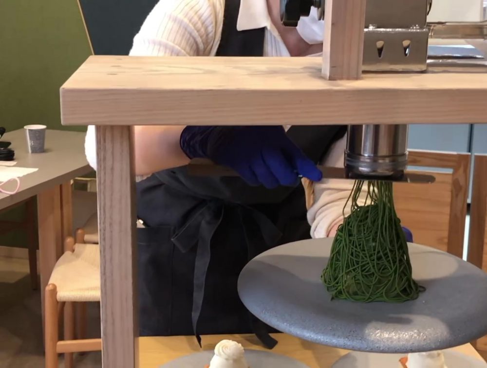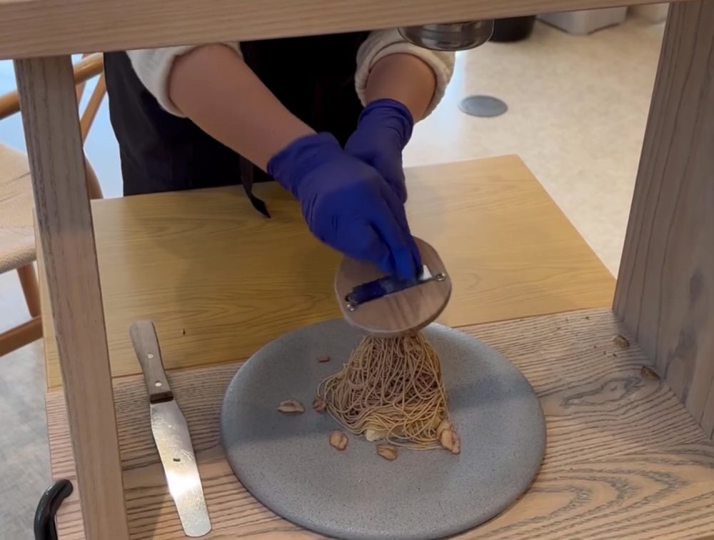 感動したのは、目の前でモンブランをかけている所が生で見れたからですね。