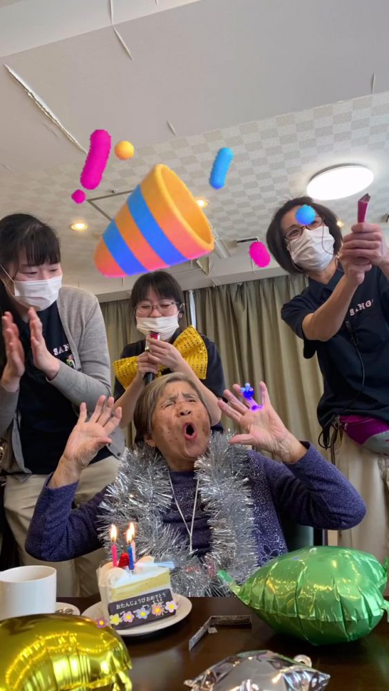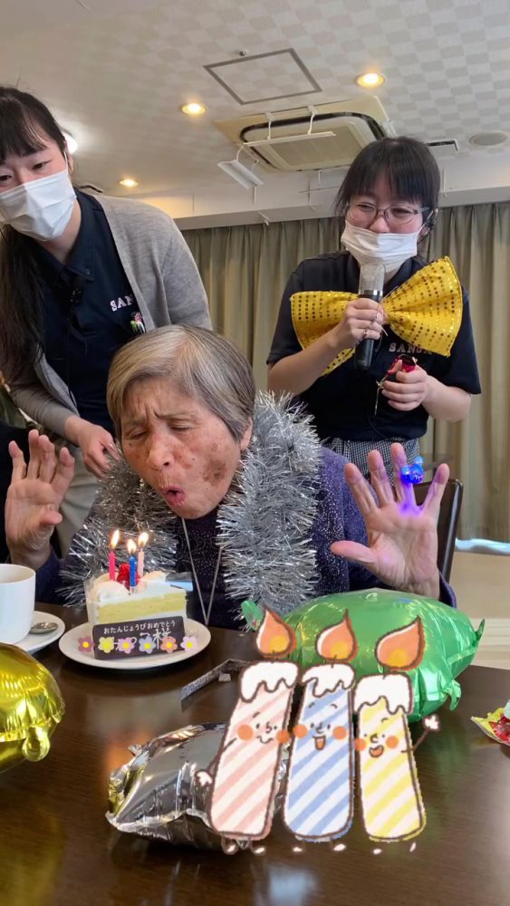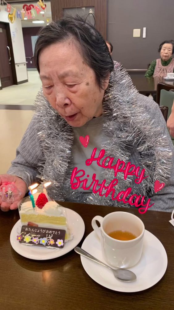 2月22日にお誕生日会を開催しました お誕生日ケーキとハッピーバースデーの歌を プレゼントしました お誕生日のお客様、とても喜ばれていました