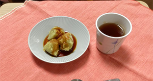 皆様に秋を感じて頂きたくさつまいもを使ったおやつにしました。