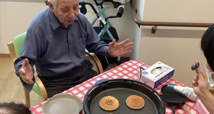 おやつレクで作りました♪綺麗なお花の模様を楽しんでいただけました。
