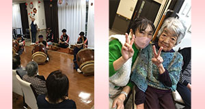 ご家族様や一般の方と太鼓の演奏を聴き、お汁粉を提供させて頂きました