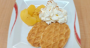 チーズケーキにシガールクッキーと生クリームを添えてみました☺