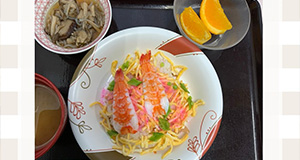 誕生会メニューの昼食でお祝い