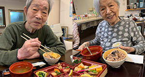 ご家族様や一般の方と太鼓の演奏を聴き、お汁粉を提供させて頂きました