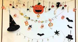 かわいいお化けとジャックオーランタンで飾り付けました。