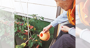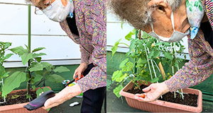 ご利用者様と一緒、今日も夏野菜の水やりを行いました。