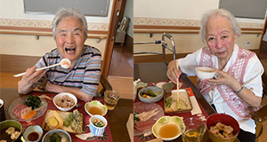 県内最高齢のご入居者様のお祝いに、 三日月滋賀県知事、佐藤大津市長が 来てくださいました。