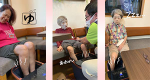 足湯に浸かりながらハンドマッサージ&パックで整え中です